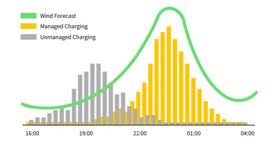 Another advantage of smart charging we’ve explored with ev.energy is the ability to ‘follow the wind’. There’s no shortage of blustery weather here in Nova Scotia, and by shifting charging to periods when wind generation will be high, we can make EV charging even cleaner.